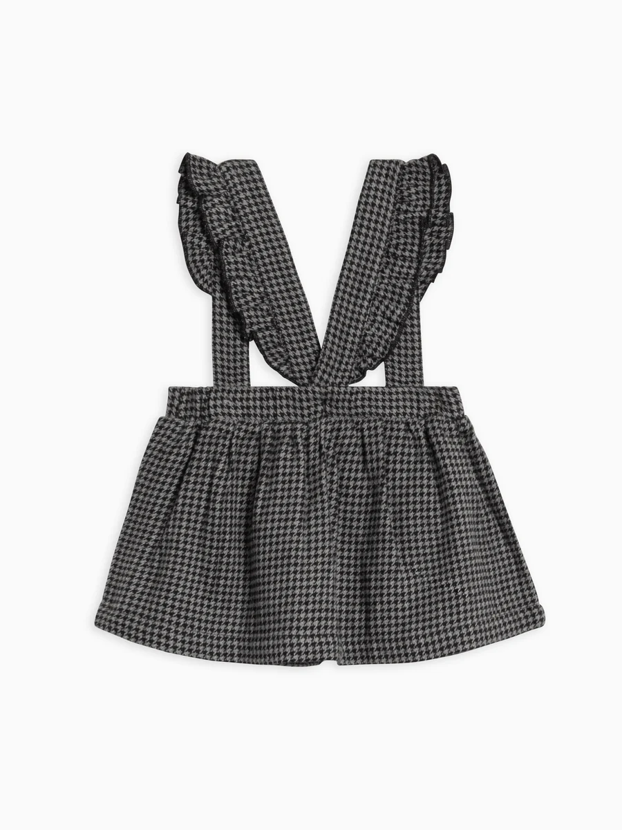 Ammie Flannel Skirt with Ruffle Suspenders - Houndstooth