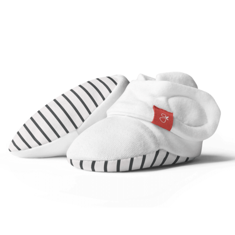 signature two-part closure system remains secure to keep baby’s feet warm and adjusts to fit as baby grows