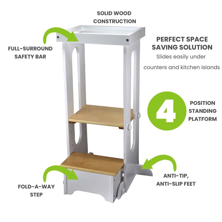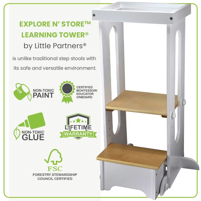 Create an accountThoughtfully designed with the guiding principles of hands-on learning in mind. The Learning Tower brings children safely to counter height to encourage exploration, independence, and interaction with parents. Its compact profile includes a folding step that makes it a perfect fit under kitchen counters and islands.