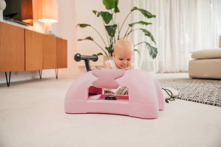 - Baby walker (6 months and up). Babies can start using My First without wheels. They can climb on, stand up and shuffle around on the integrated gliding pads.