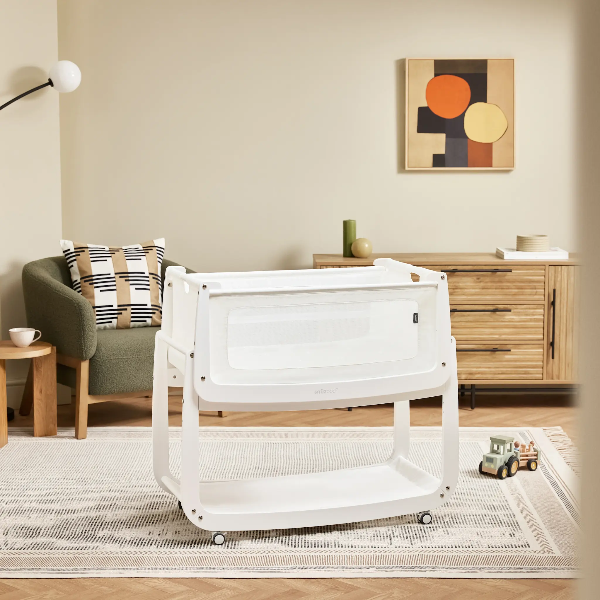 Thoughtfully designed for parents who value modern aesthetics and peace of mind, the SnuzPod⁵ grows with your baby from birth to approximately six months—making every rest simple, safe, and beautifully coordinated.