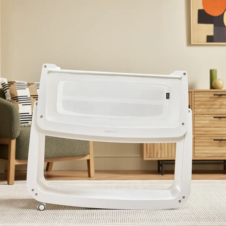 New to the SnuzPod⁵ are 4 lockable castor wheels that make moving from room to room effortless and a comfort incline mode that can help ease reflux symptoms. The lightweight lift-off bassinet transitions easily from bedside to around-the-home naps, while the gentle rocking base offers natural soothing motion.