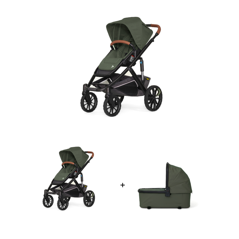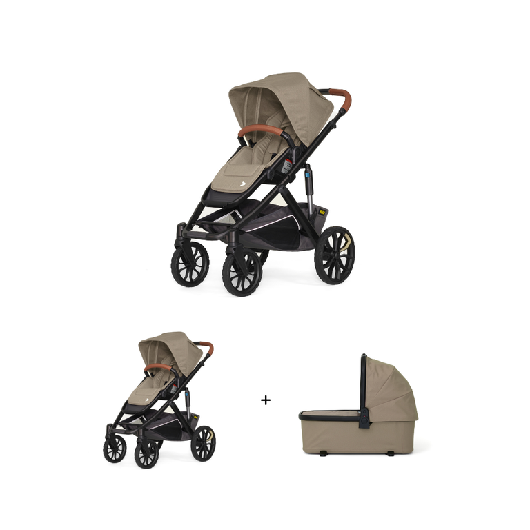 (1) Switch&Roll Stroller: Your everyday companion for the years ahead—thoughtfully designed to grow with your child as your life evolves. Includes reversible Switchback Seat, &Roll all-terrain stroller frame, two removable genuine Napa leather handlebar grips (one for each side), and a removable leather bumper bar grip.