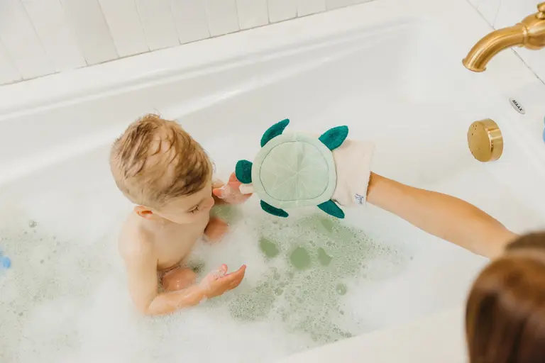 Create an accountThe Cutest Way to Clean Up Copper Pearl wash mitts are made of ultra-soft bamboo terry cloth, featuring handy loops to hang dry and a universal fit for any-size hand.